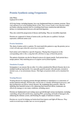 Conversely, harmful proteins, such as those produced by viruses or cancer cells, could be suppressed by introducing frequencies that interfere with their synthesis.